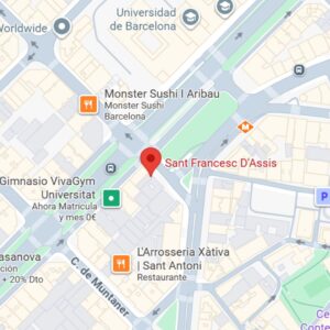 Pl. de la Universitat, 2, L’Eixample, 08007 Barcelona Quedarem a les 11:30 davant de la porta de la Escola Sant Francesc d’Assis.